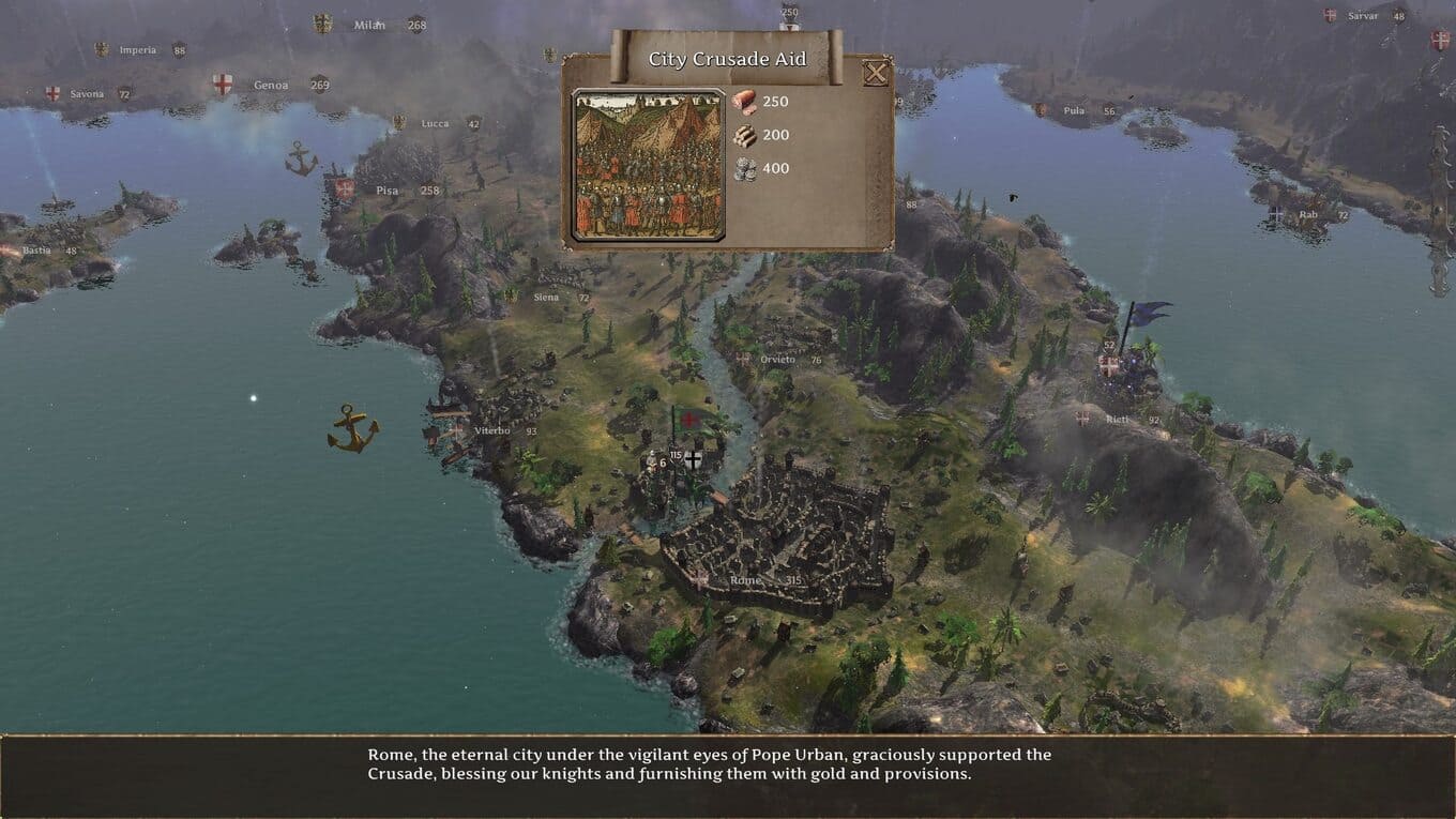 Knights of the Crusades transports you to the era of the First Crusades, placing you in the shoes of a lone knight seeking to make his mark on history. Players will rise from a novice warrior to the founder and leader of their own holy order, whether the Templars or a unique faction of your own creation. The game combines strategy elements with city-building and sandbox management, allowing you to make decisions that impact military action, religion, diplomacy, and development.